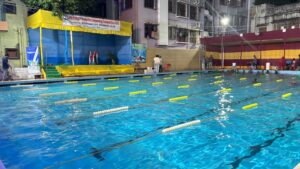 Berhampore Swimming Club Competition 2025 বহরমপুর শহীদ সুর্যসেন রোডে রাধাপ্রসাদ মেমোরিয়াল সুইমিং পুলের জল মাতাবেন রাজ্যের বিভিন্ন প্রান্ত থেকে আসা সাঁতারুরা। শনিবার সন্ধ্যায় বহরমপুর সুইমিং ক্লাব চত্বর জুড়ে সাজো সাজো রব। এই সাঁতার প্রতিযোগিতা দেখার জন্য শহরের মানুষজনকে আমন্ত্রন জানিয়েছেন বহরমপুর সুইমিং ক্লাবের উদ্যোক্তরা।