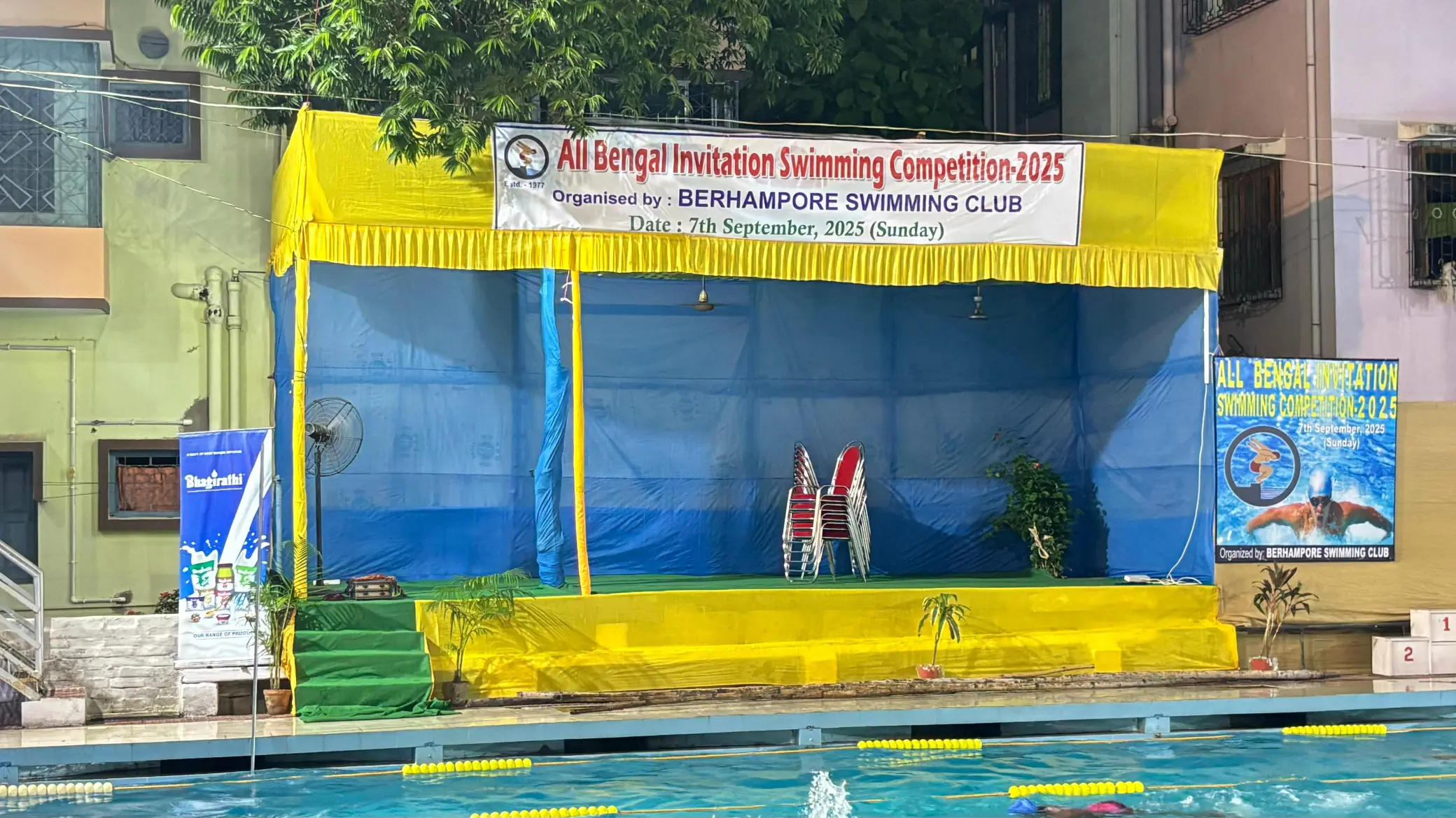 Berhampore Swimming Club Competition 2025 রাত পোহালেই রবিবার 7th September, সাঁতার প্রতিযোগিতা শুরু বহরমপুর সুইমিং ক্লাবে Berhampore Swimming Club । শনিবার সন্ধ্যাতেই পৌঁছে গেছেন রাজ্যের বিভিন্ন প্রান্তের সাঁতারুরা। রবিবার সকাল ৯টায় শুরু হবে সারা বাংলা আমন্ত্রন মূলক সাঁতার প্রতিযোগিতা All Bengal Invitation Swimming Competition-2025.পরিচালনায় বহরমপুর সুইমিং ক্লাব।