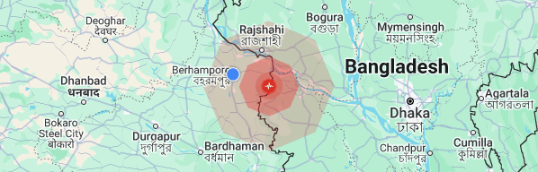 নিজস্ব সংবাদদাতা, বহরমপুরঃ আজ বুধবার সন্ধ্যা সাতটা সাঁইত্রিশ মিনিট নাগাদ ভূমিকম্প হয় বহরমপুরে। তীব্র কম্পন অনুভব করেন যাঁরা বাড়ির ভেতরে ছিলেন। পথ চলতি মানুষজন ক্ষণিকের জন্য থমকে যান। রিখটার স্কেলে যার তীব্রতা ছিল ৪.৫। বহরমপুর থেকে চার কিলোমিটার দূরে বারুইপারায় এই ভূকম্পন তীব্র হয়। যদিও অনেকেই তা টের পাননি বলেও জানেন। গুগল জানায় বাংলাদেশ ও ভারতে এই ভূকম্পন অনুভূত হয়।