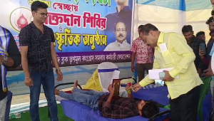 Kandi News পয়লা বৈশাখ ‘পশ্চিমবঙ্গ দিবস’ উপলক্ষে স্বেচ্ছায় রক্তদান শিবির ও সাংস্কৃতিক অনুষ্ঠানের আয়োজন কান্দিতে। কান্দি ব্লক ও শহর তৃণমূল কংগ্রেসের পরিচালনায় এবং কান্দি ব্লক তৃণমূল কংগ্রেস সমবায় কর্মচারী ফেডারেশনের পরিচালনায় রক্তদান শিবির হল মঙ্গলবার দুপুরে। শিবির ঘুরে দেখলেন কান্দির বিধায়ক অপূর্ব সরকার। মহিলা, পুরুষ নির্বিশেষে এদিন স্বেচ্ছায় রক্তদান করেন।