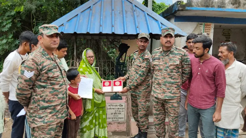 Tribute to Kargil War Hero ২৬ শে জুলাই, কার্গিল বিজয় দিবসের আগে কার্গিলের দ্রাস থেকে কর্তব্যরত সেনা জওয়ানদের প্রতিনিধি দল শহীদের স্মৃতি চারণায় জানালেন বিশেষ সম্মাননা। শহীদ পরিবারের হাতে তুলে দেওয়া হল প্রশংসাপত্র এবং স্মারক। নেওয়া হল পরিবারের খোঁজ খবর। শোনা হল সুবিধা, অসুবিধার কথা। নায়েব সুবেদার রাফিকুল হোসেন জানান, ২৬ শে জুলাই কার্গিল বিজয় দিবস পালনের আগে যতজন শহীদ হয়েছেন বাড়ি বাড়ি গিয়ে তাদের সম্বর্ধনা জানানো হচ্ছে। ডকুমেন্টেশন জনিত কোন সমস্যা আছে কিনা সেগুলি লিপিবদ্ধ করা হয়। সেই কারনেই বাড়ি বাড়ি যাওয়া।